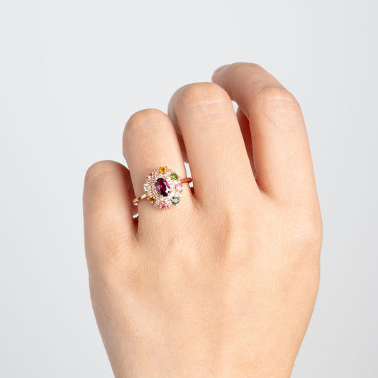 Multicolor Tourmaline Petal Starburst Oval-Cut Ring – Lucky Bloom Design