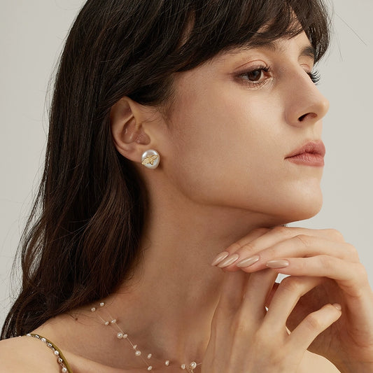 Baroque Pearl Bee Stud Earrings