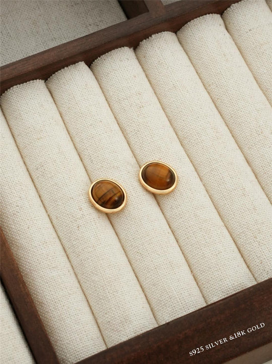 Gold Plated Vintage Tiger Eye Stone Earrings