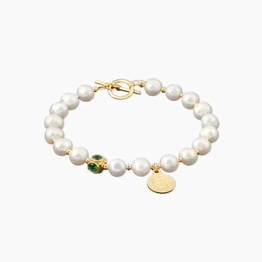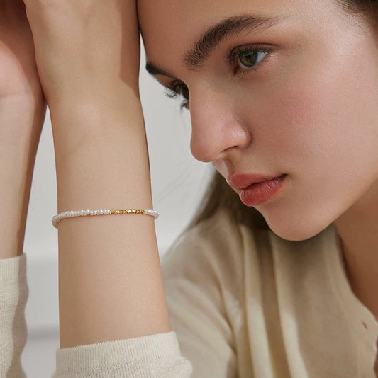 Natural Pearl Golden Beads OT Clasp Bracelet