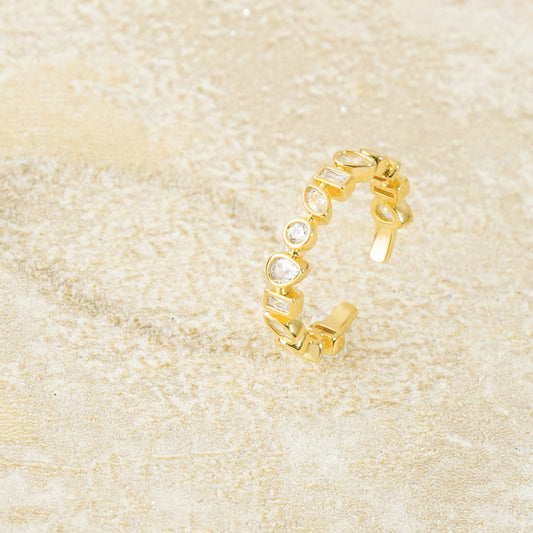 Multi-shaped Zirconia Gold Plated Open-ended Ring