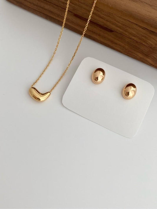 S925 Silver Small Gold Bead Stud Earrings Necklace Sets