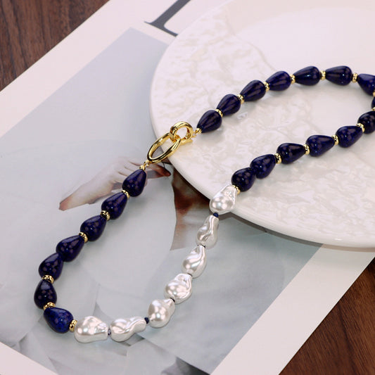 Imitation Baroque Pearl Lapis Lazuli Necklace