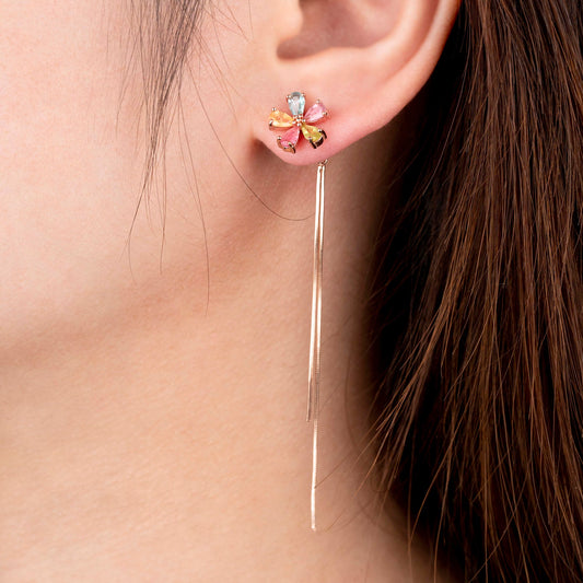 Multicolor Tourmaline Teardrop Pinwheel Bloom Dangle Earrings – Rainbow Petal Design
