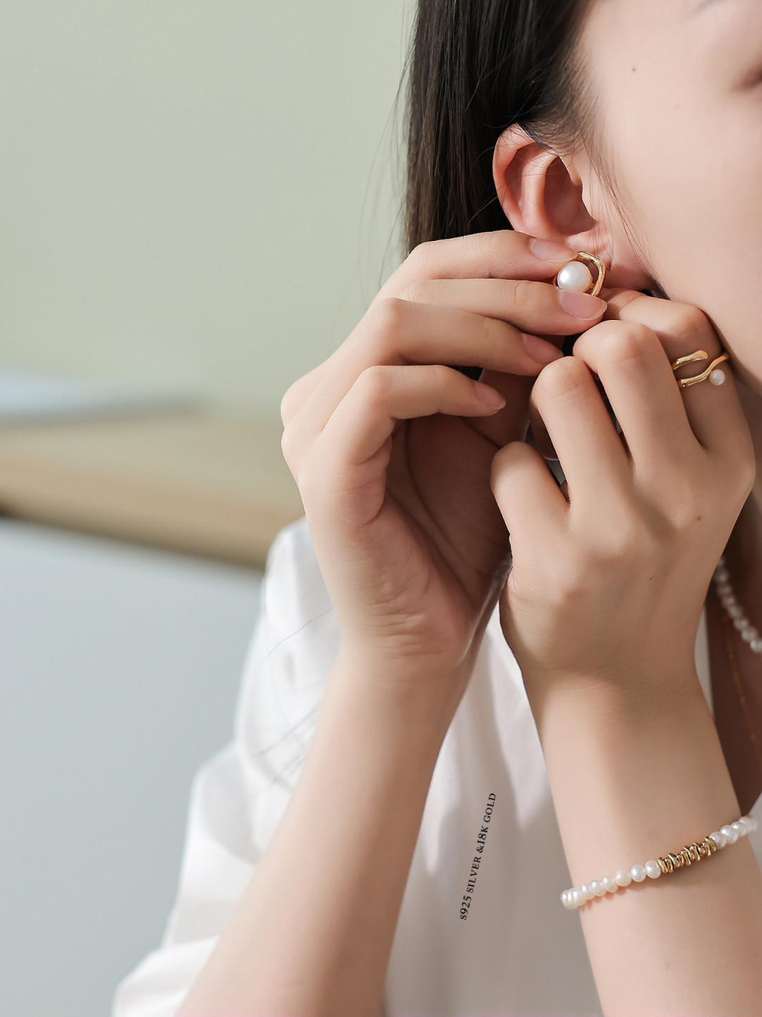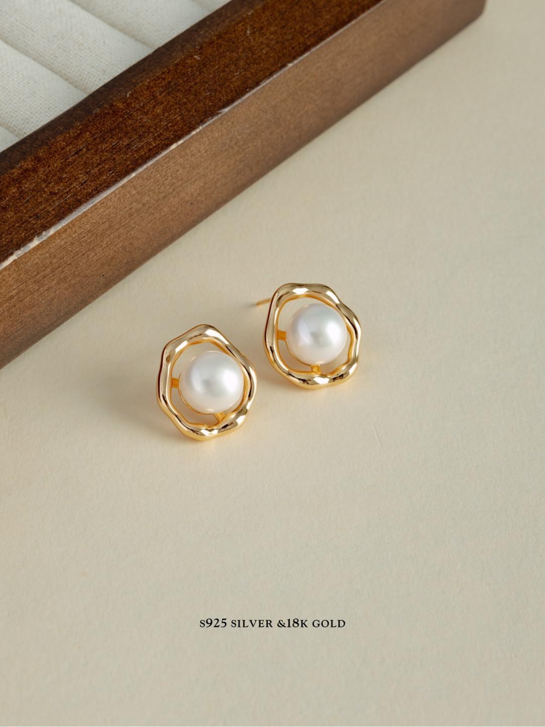 Materials: S925 silver plated with 18k gold and freshwater pearls.