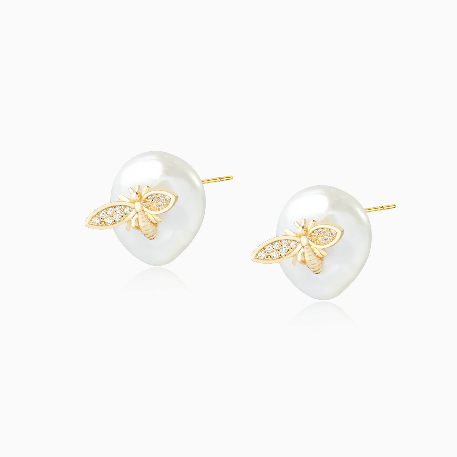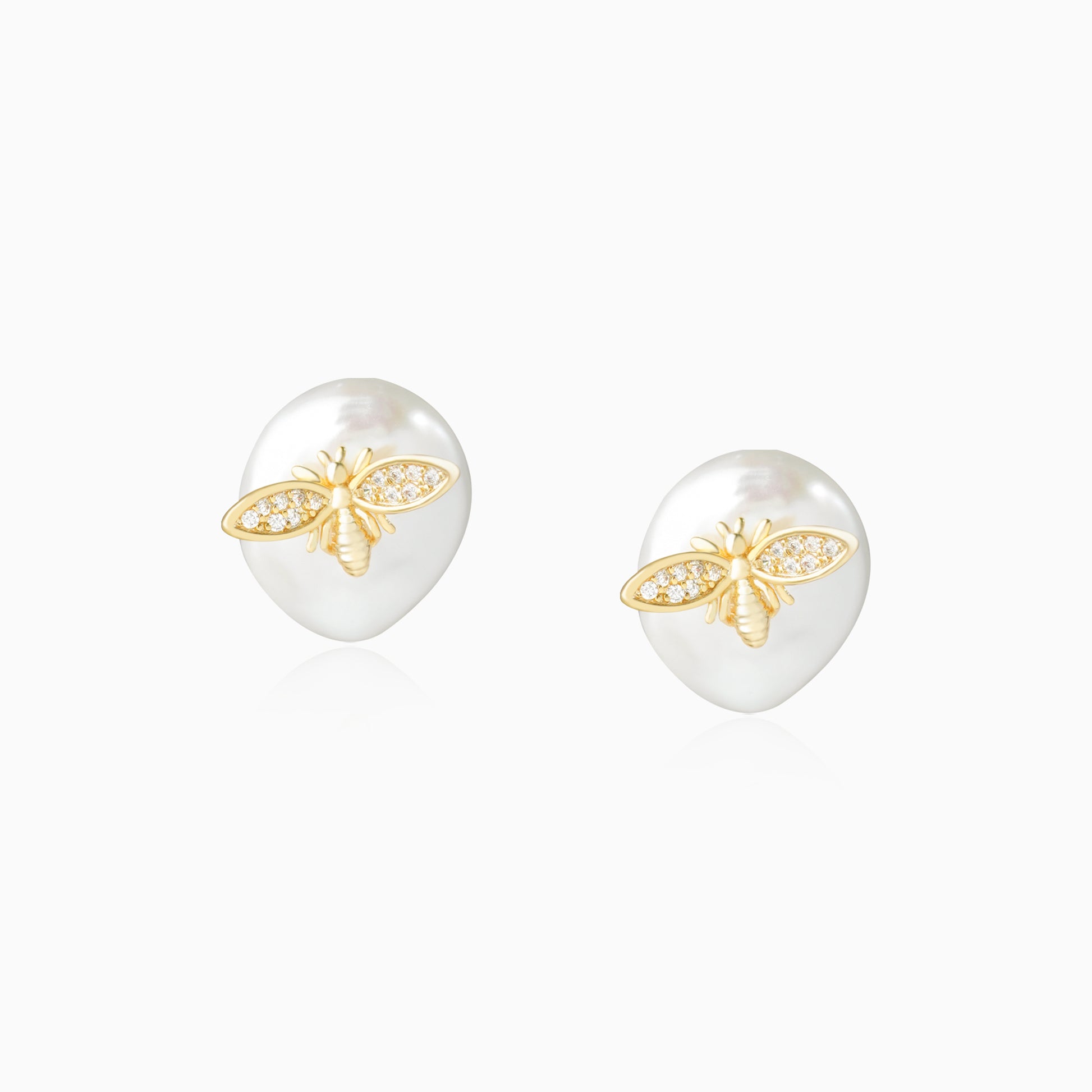 Baroque Pearl Bee Stud Earrings