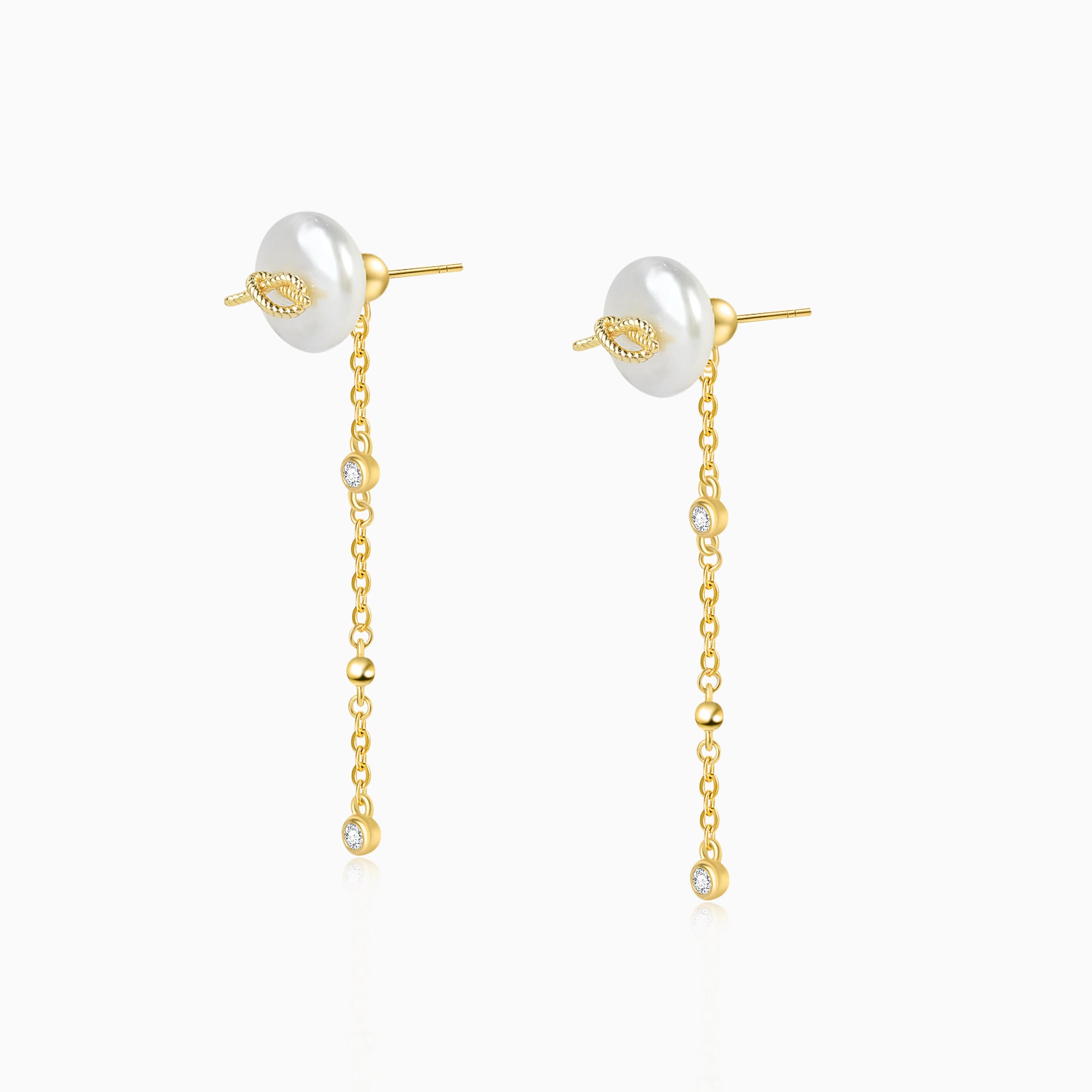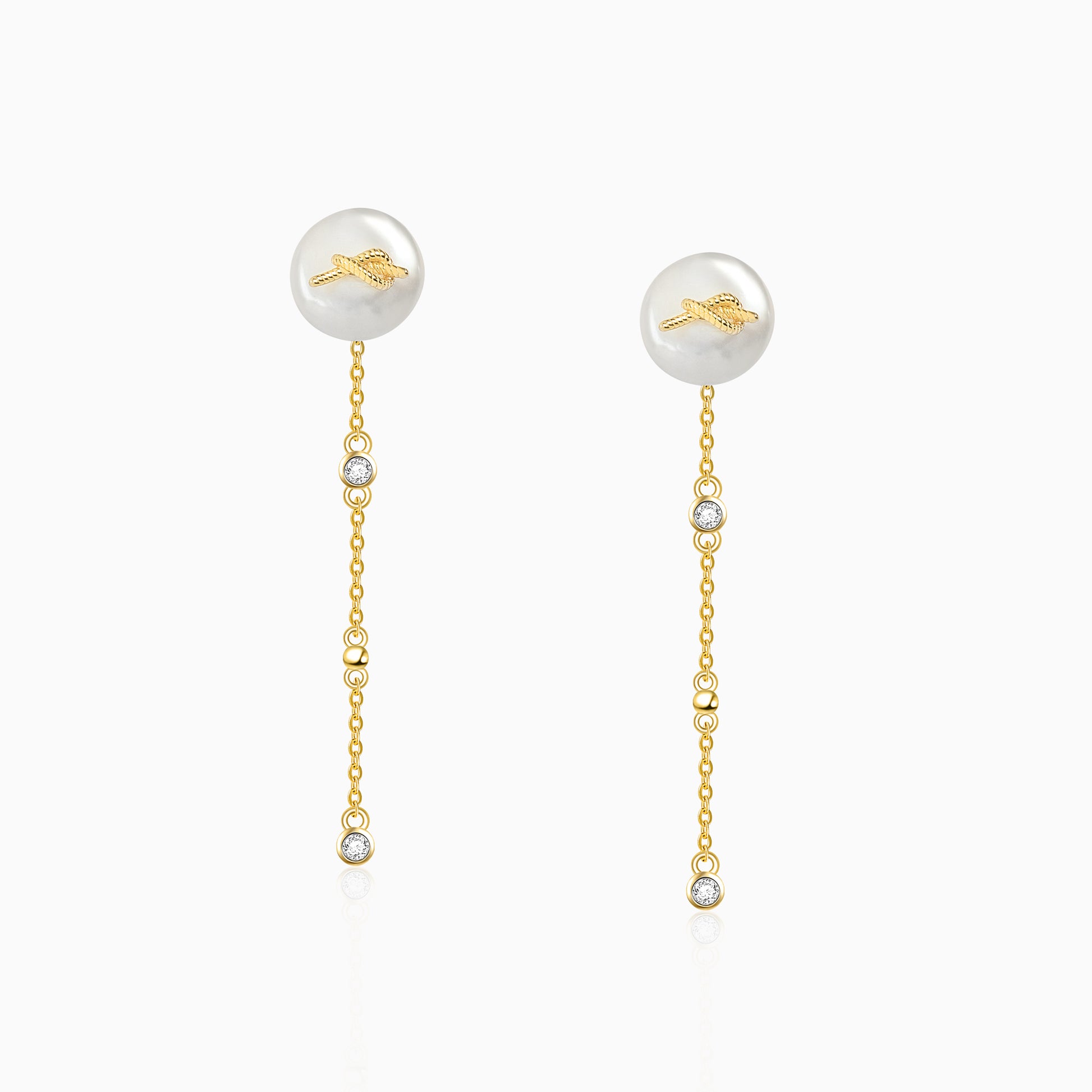 Metal knots meet the organic texture of natural pearls, their warm luster complemented by dangling zircon tassels—an artful interplay of delicacy and edge, versatile enough to elevate any look.