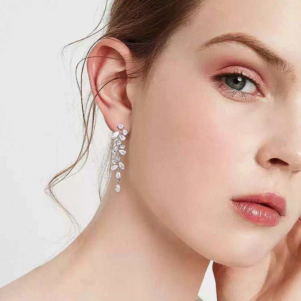 Material: Alloy, Silver Plated, S925 Earrings Post, Cubic Zirconia