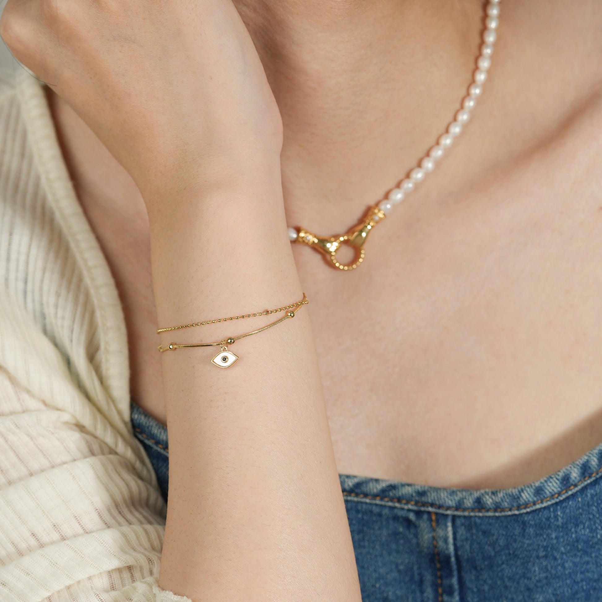 Double-Layer Evil Eye Gold Plated Bracelet