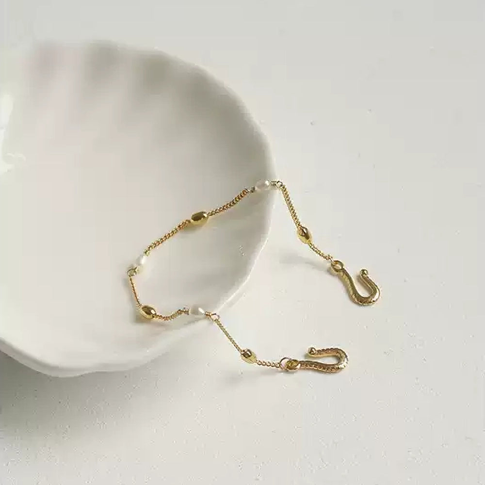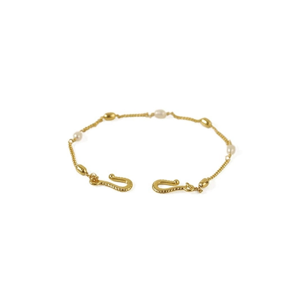 Elegant Gold Plated Hook Clasp Pearls Bracelet