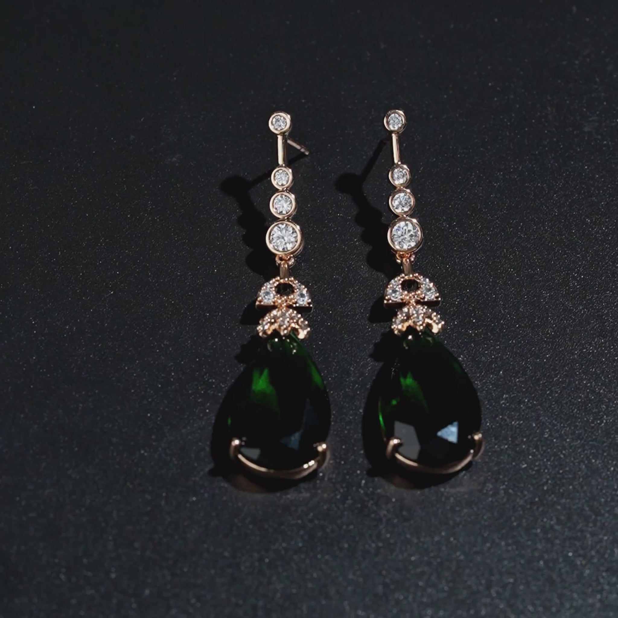 These emerald-green drop earrings bring instant red-carpet elegance to any look. It is perfect for evening events, weddings, or whenever you want a touch of timeless sophistication.