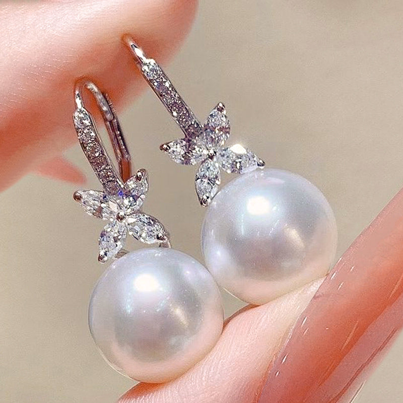 Material: Brass, Cubic Zirconia, Faux Pearls, Stainless Steel Earrings Posts