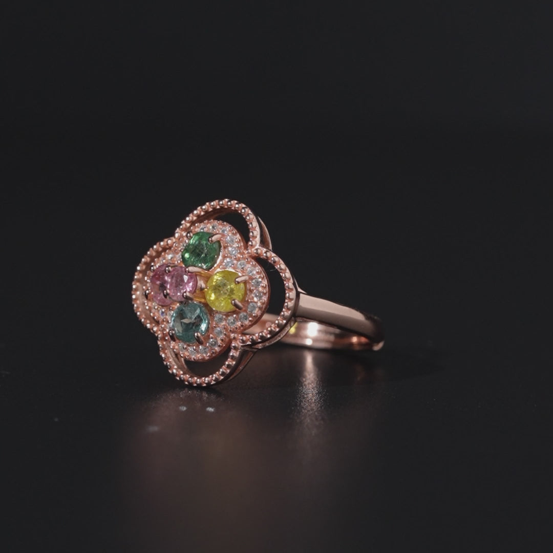 Four Leaf Flower Tourmaline Ring