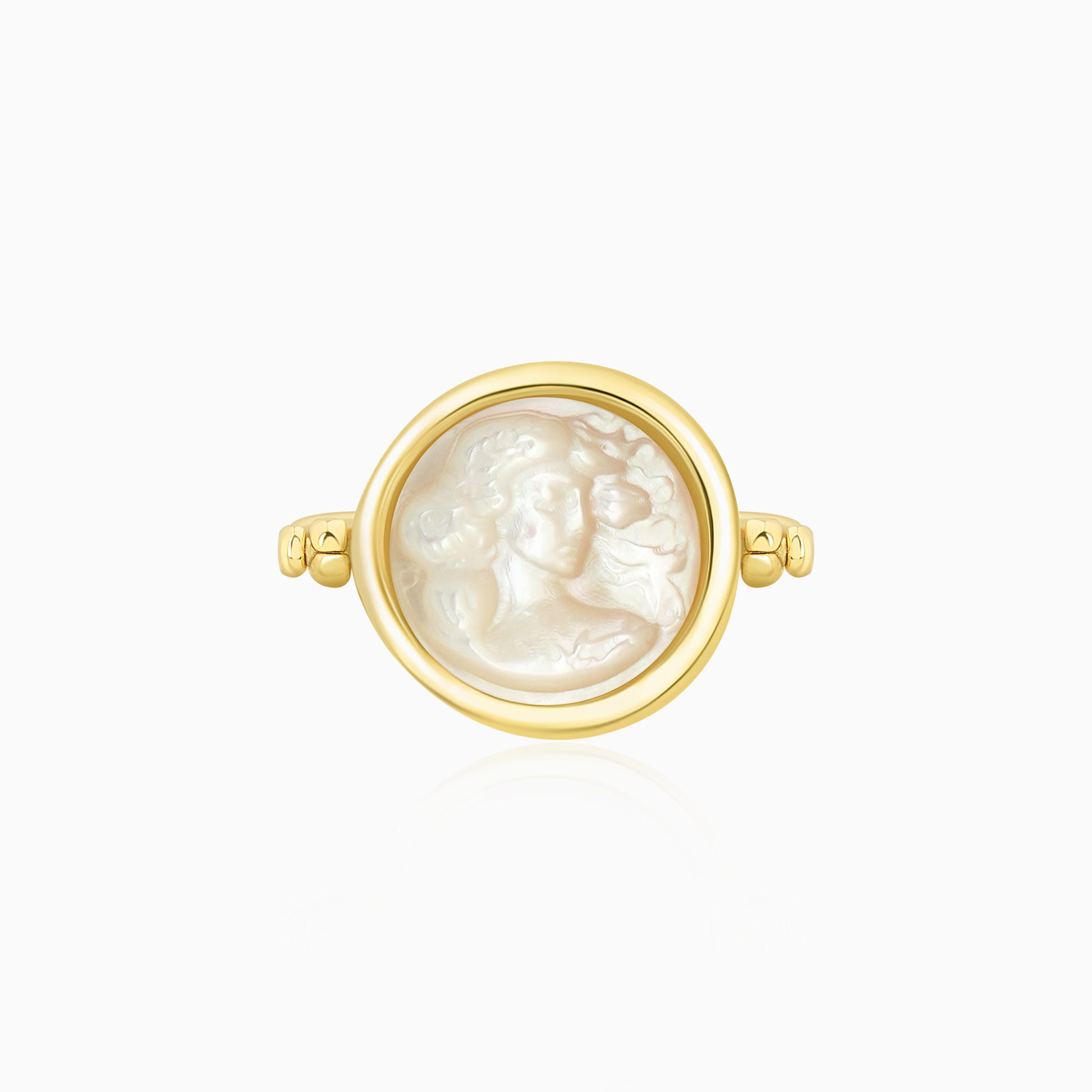 Carved from natural mother-of-pearl, the love goddess profile shimmers with rose-gold iridescence; its reversible design unveils different moods, revealing elegance from every angle.