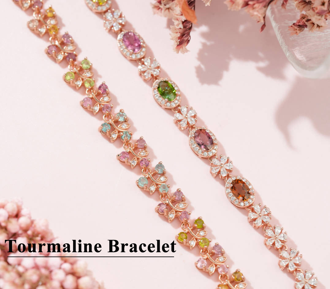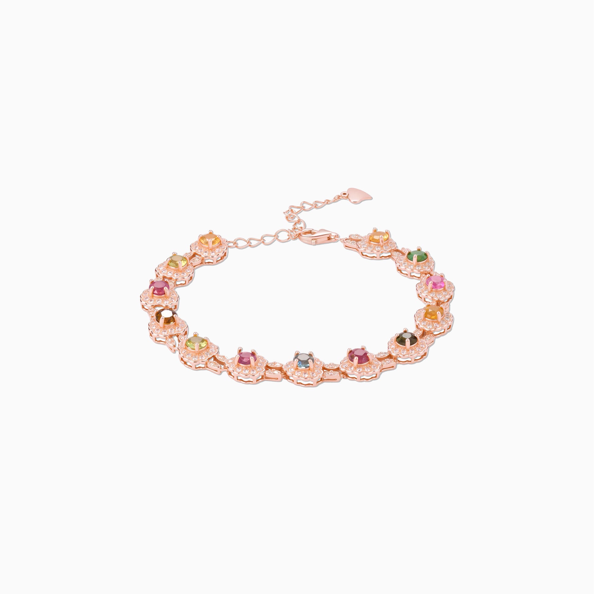 Multicolor Tourmaline Rainbow Halo Bracelet – Round-Cut Floral Design