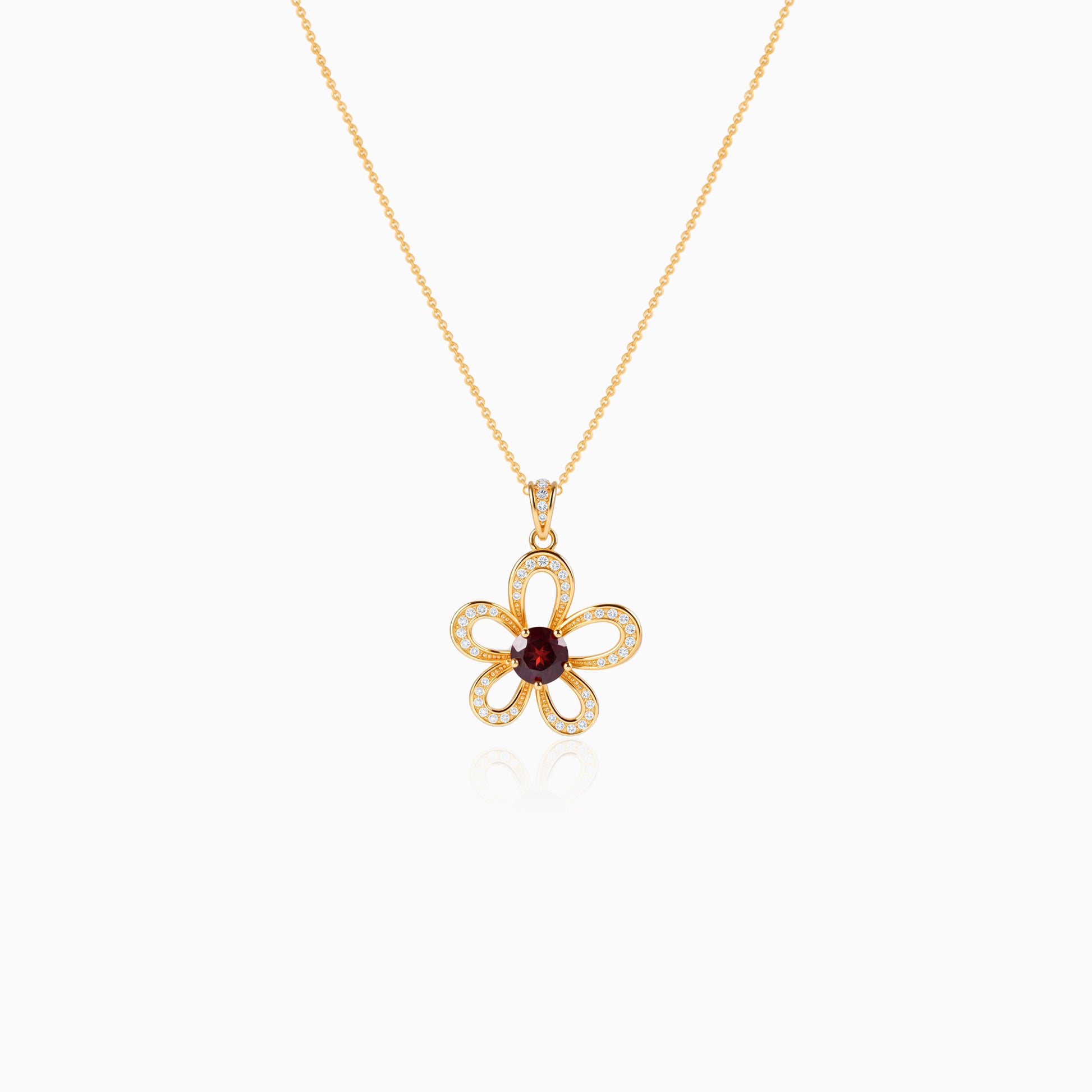 Hollowing Floral Garnet Pendant