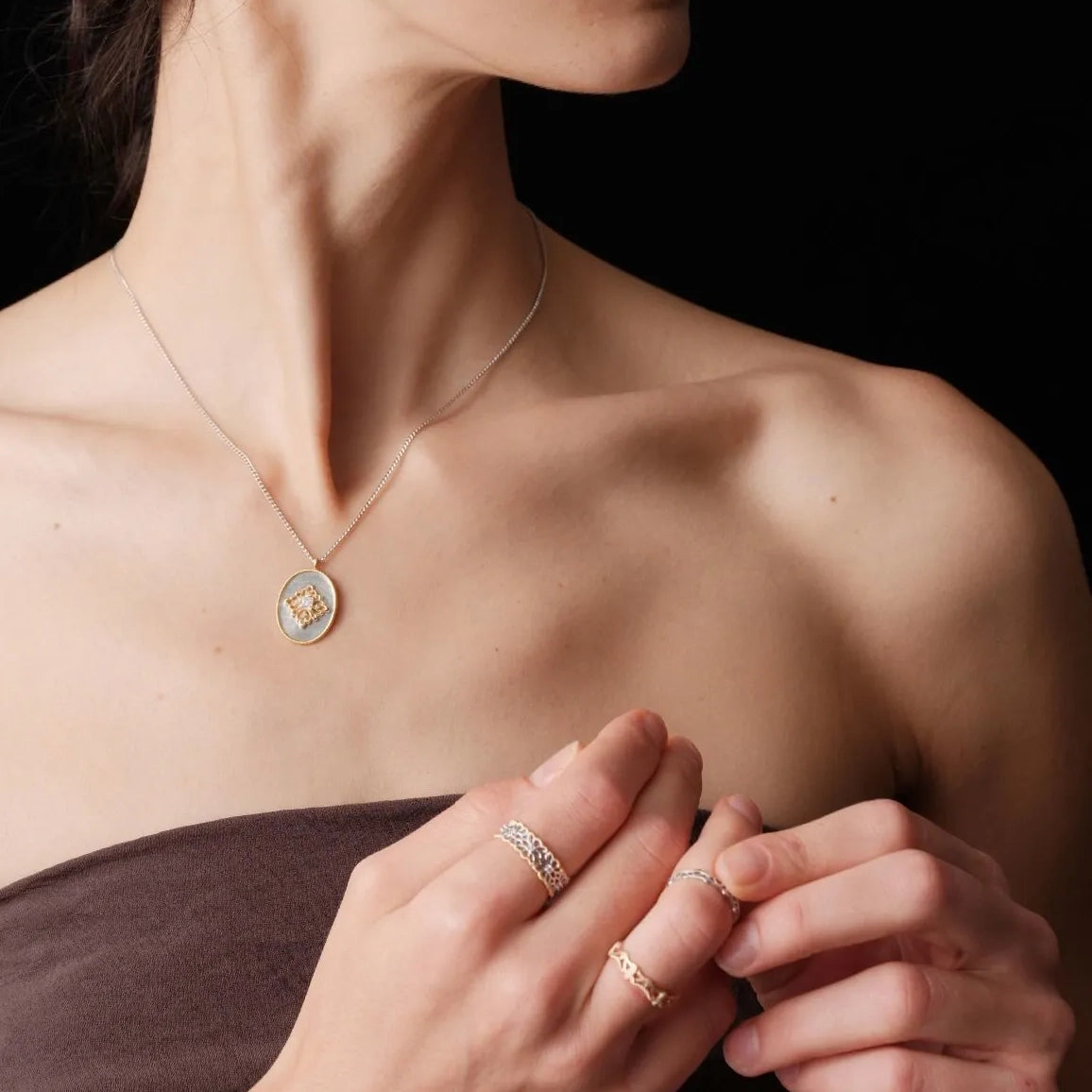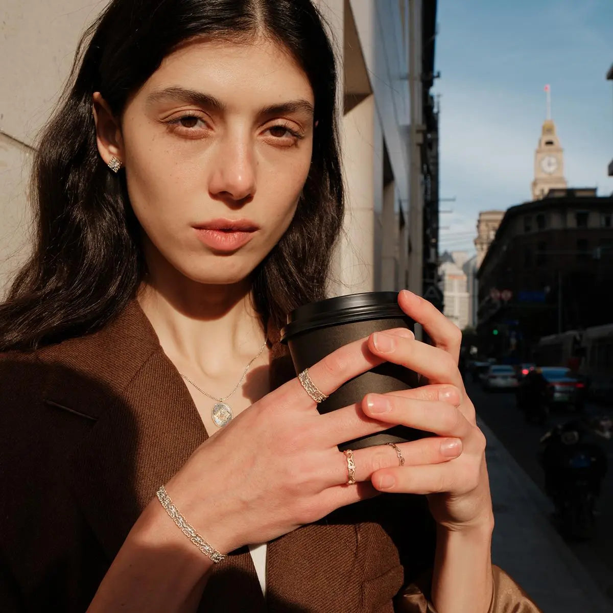 We reject excessive packaging by minimizing paper usage and adopting reusable jewelry boxes.