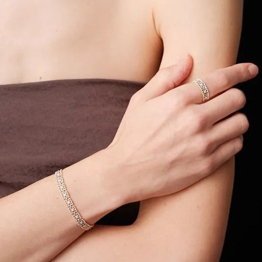 We are progressively reducing the use of newly mined materials such as gold, silver, and natural gemstones in our jewelry.