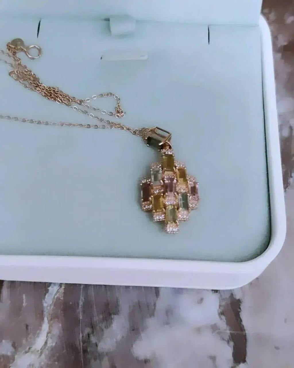 Multicolor Tourmaline Mosaic Emerald-Cut Pendant Necklace – Geometric Spectrum Design