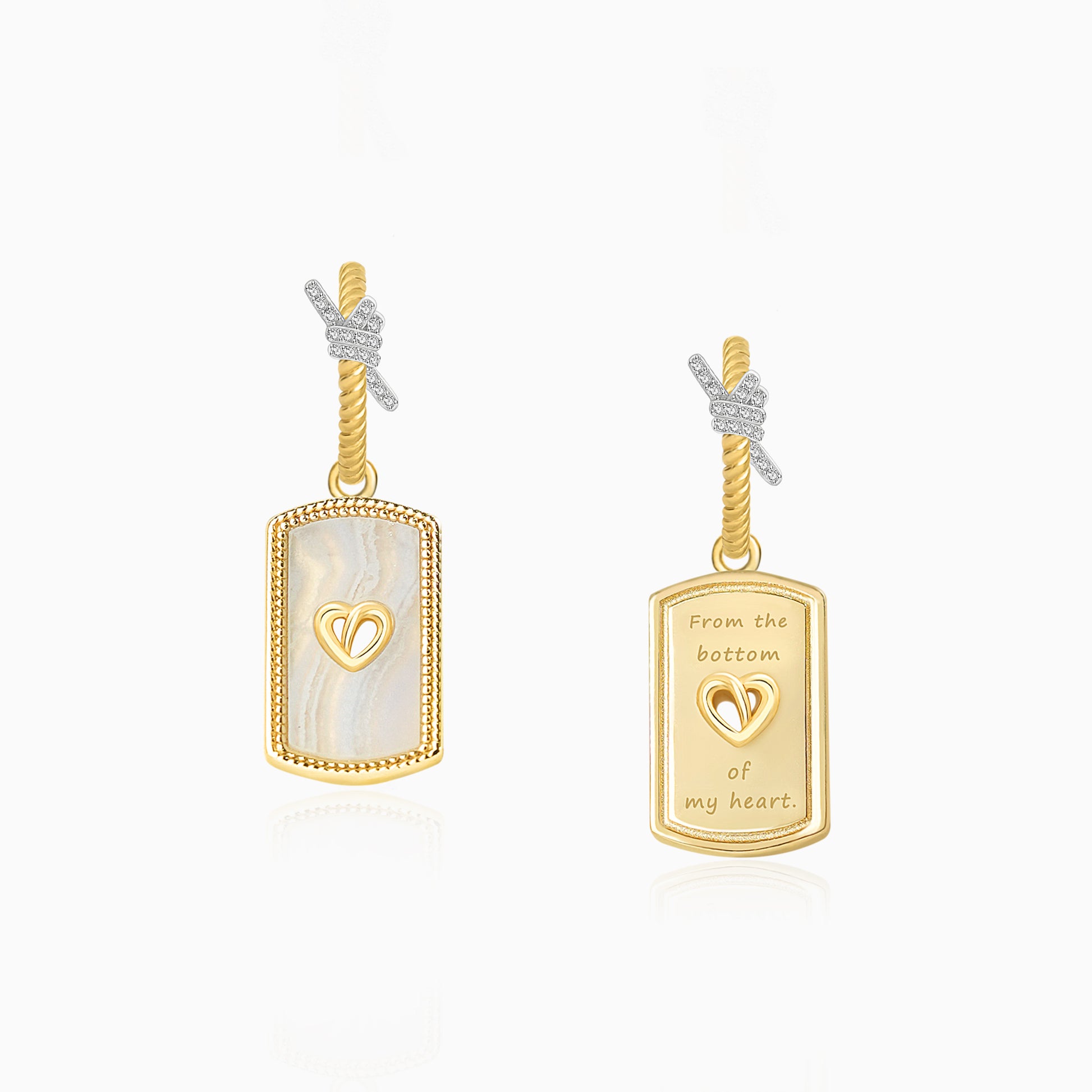 Dual‑plated earring backs echo the form of maritime knots, set with misty blue‑veined agate and inscribed with a secret phrase on the reverse—subtle yet striking, with styling options as mysterious as their cloud‑like patterns.