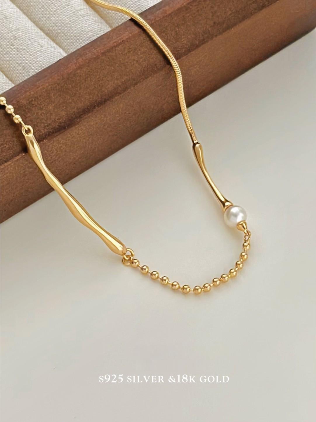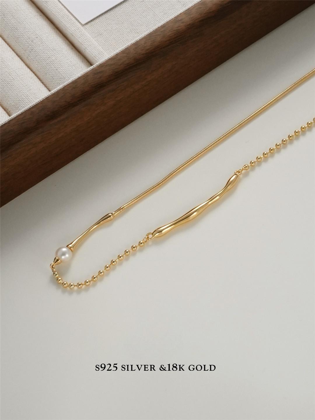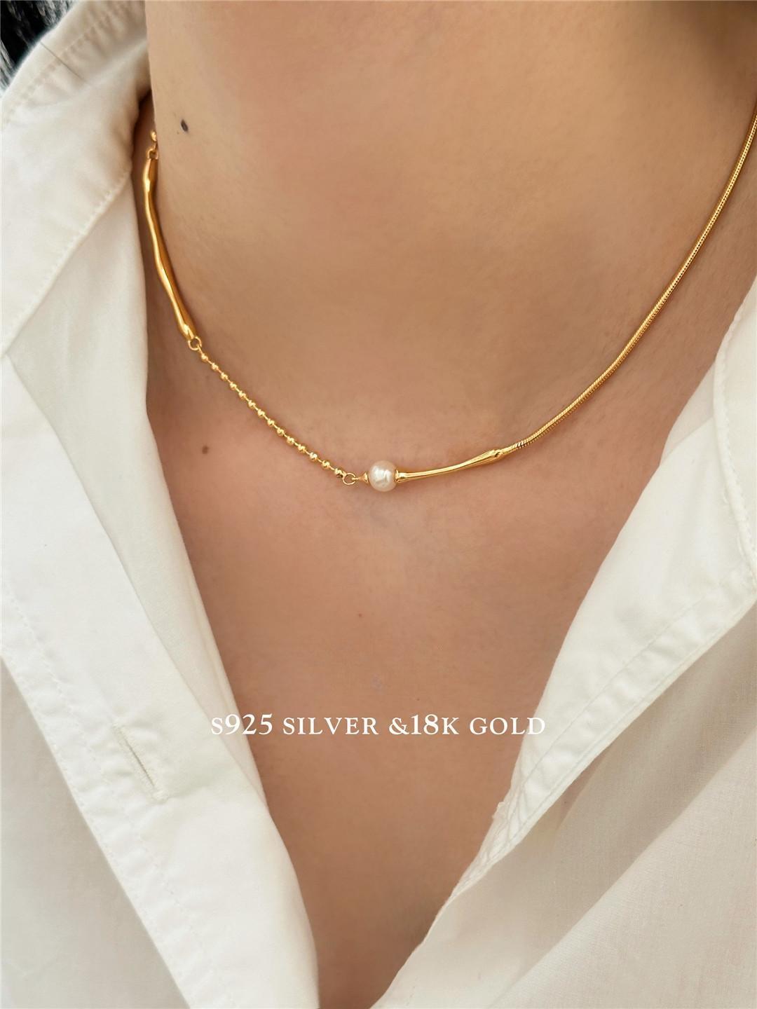 Materials: S925 silver plated with 18k gold and freshwater pearls.