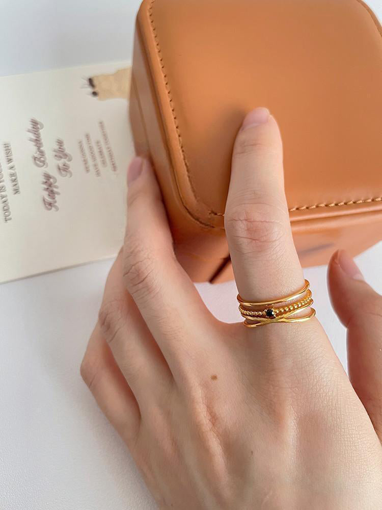 Material: S925 silver plated with 18k gold and black zircon stones.