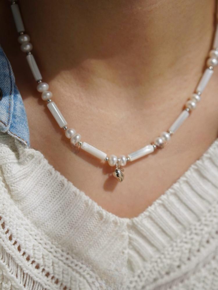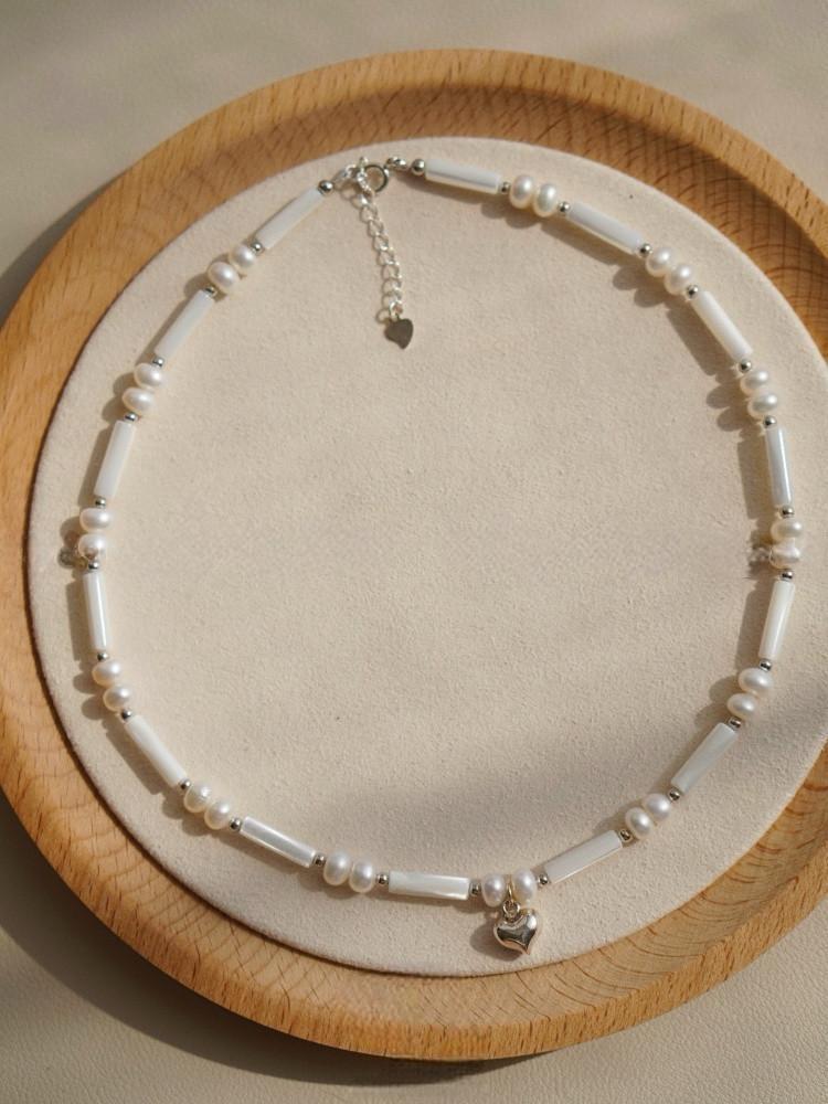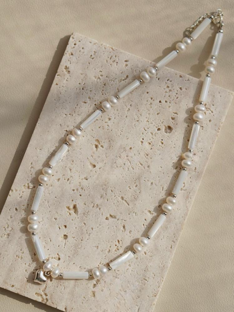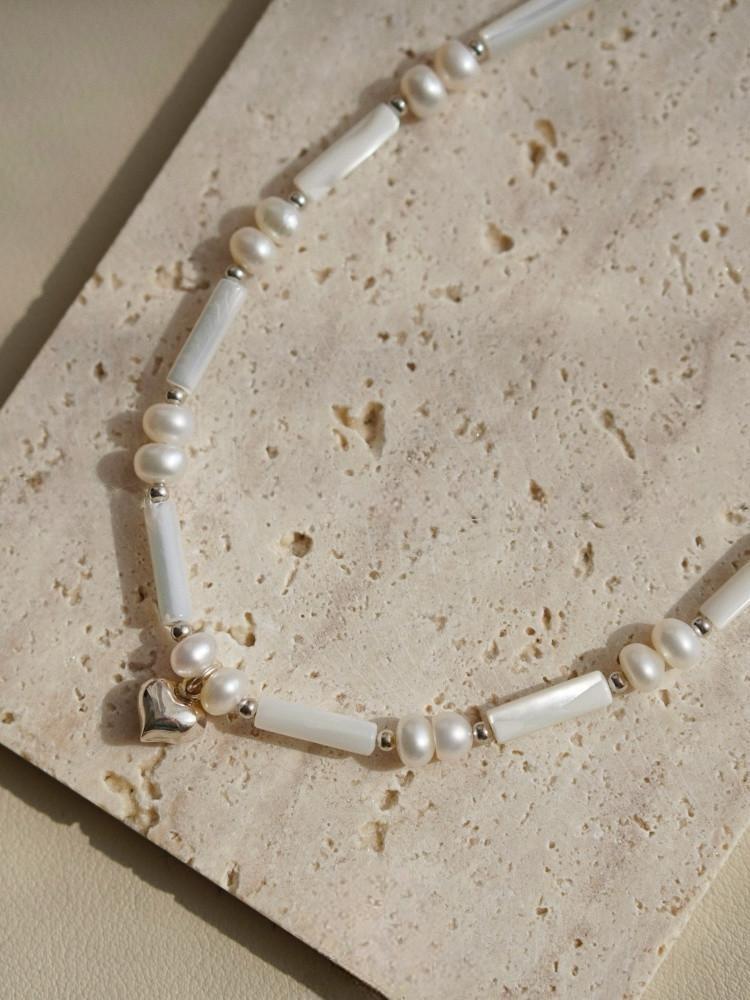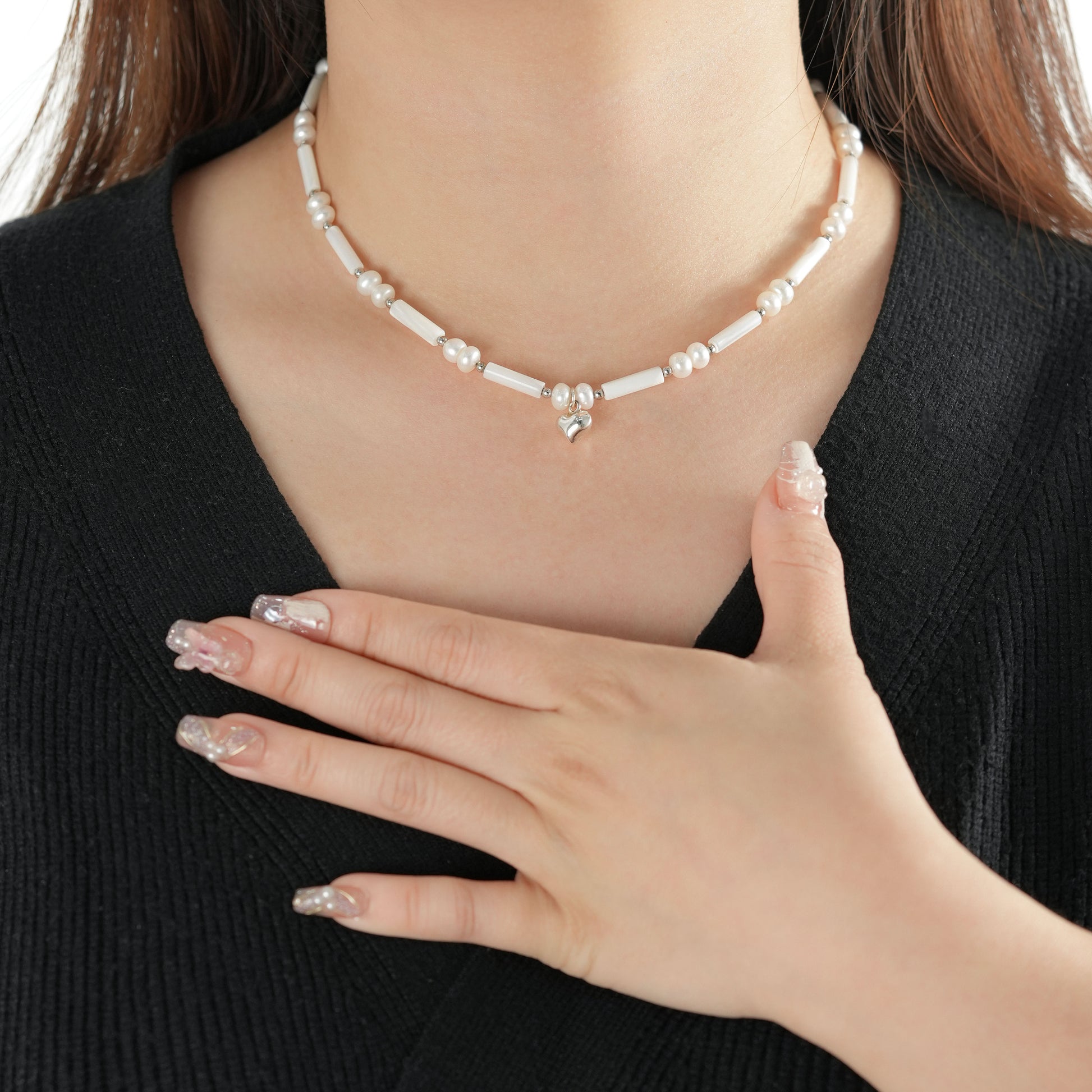 Natural Freshwater Pearl Baroque Shell Heart Pendant Necklace