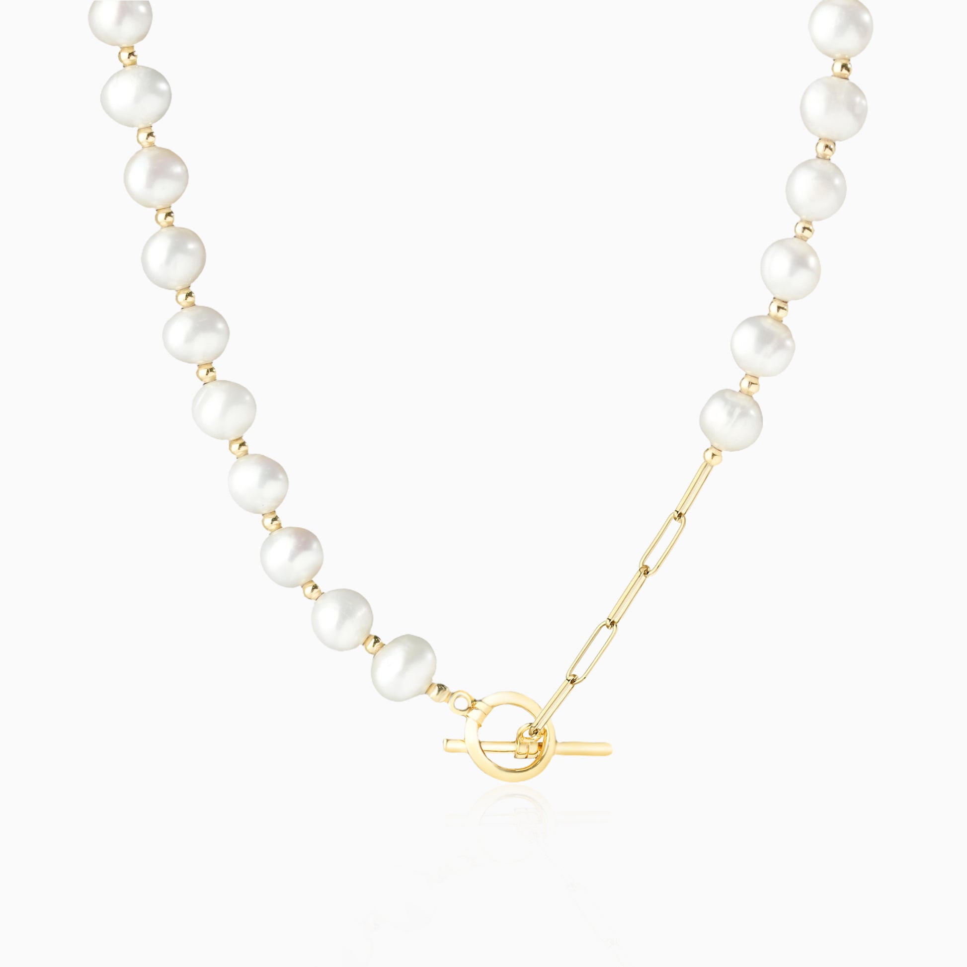 Natural Pearl Golden Beads OT Clasp Necklace