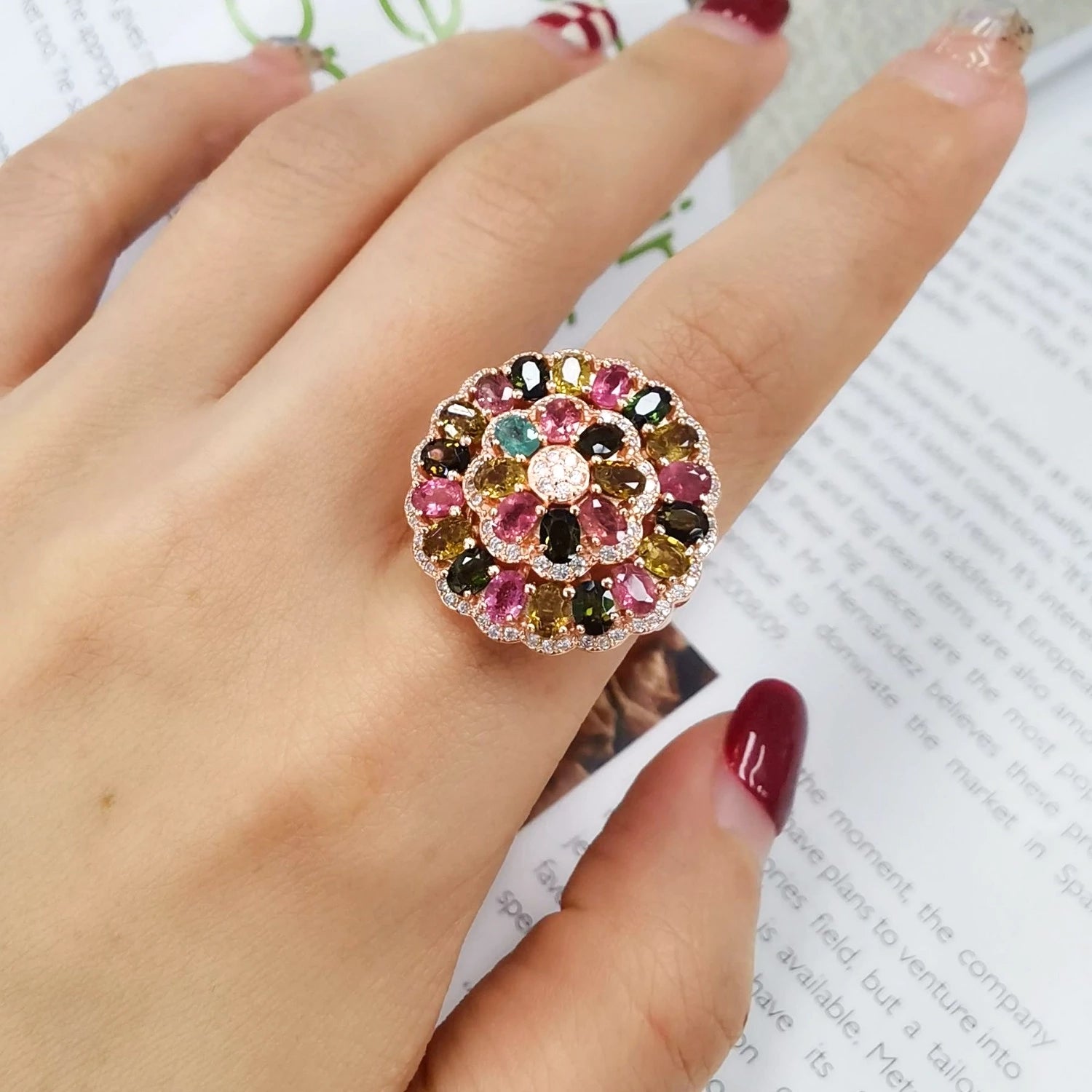 Rainbow Mosaic Blossom Ring