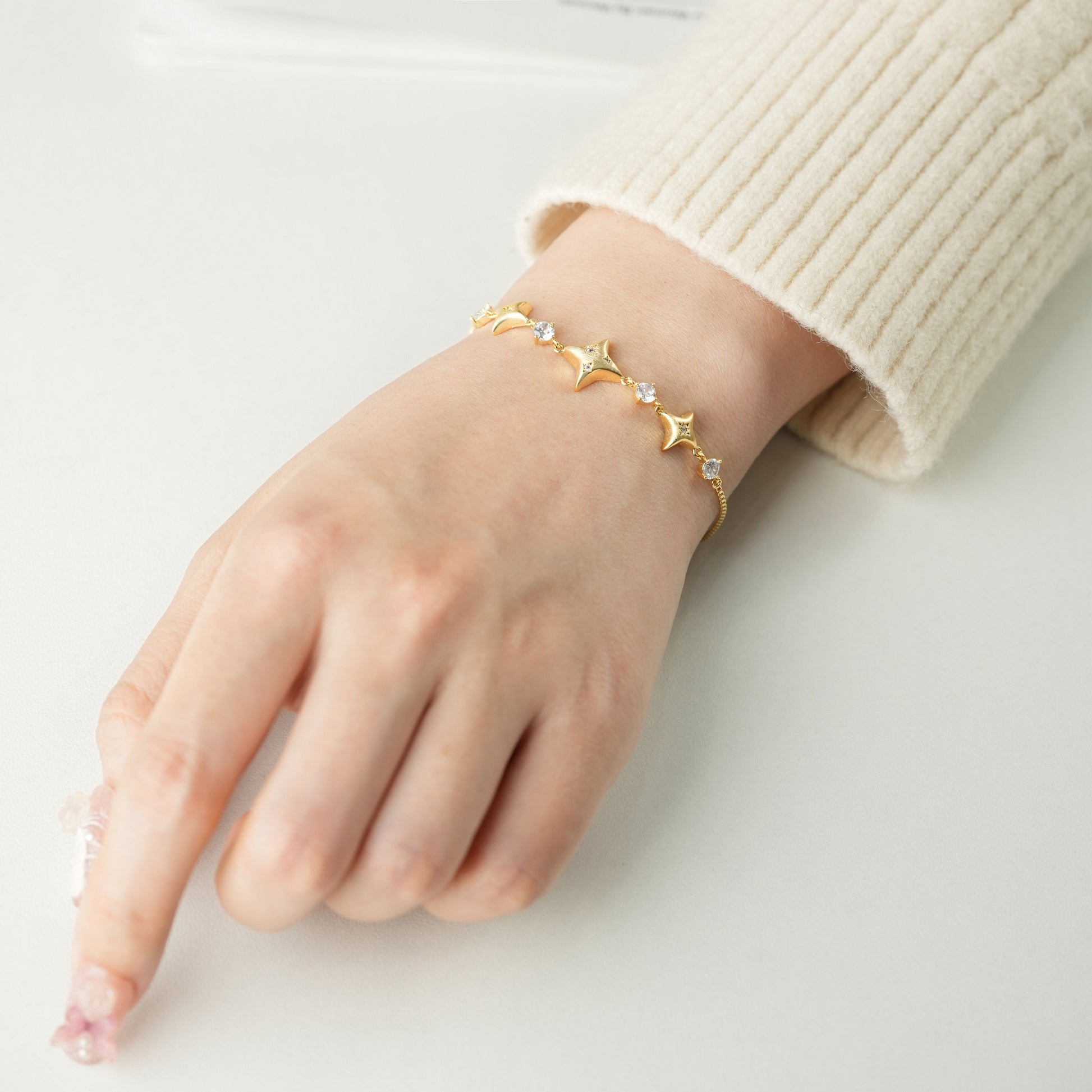 Rhombic Zirconia Slider Clasp Gold Plated Bracelet