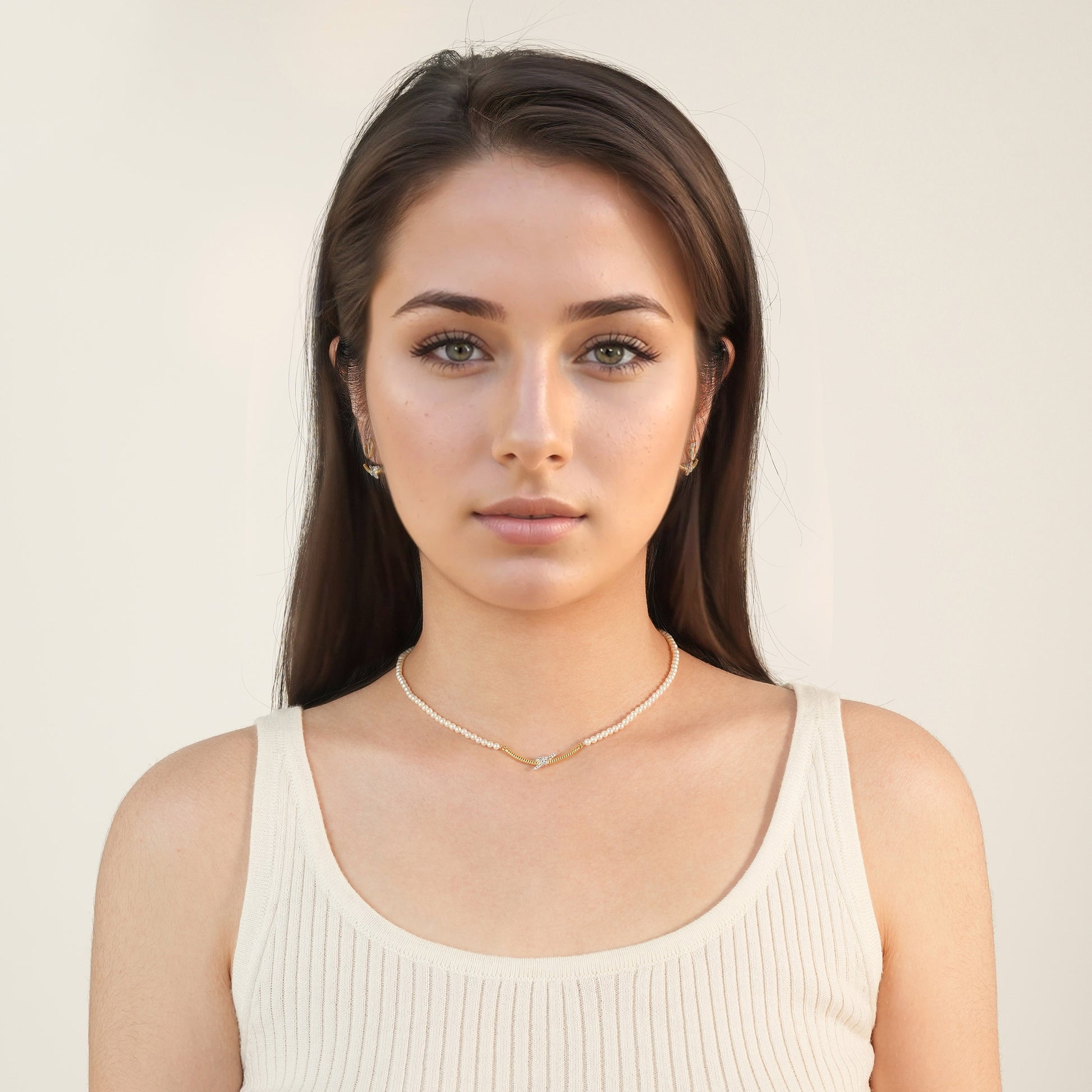 Satin-like metal strands twist into ribbon-like knots, with zircon accents twinkling like stars. Dual-tone plating creates shifting light reflections, while freshwater pearls soften the metallic edge—wear solo or layered for a graceful, luminous finish.