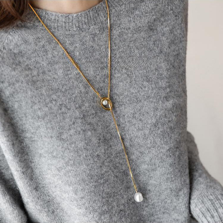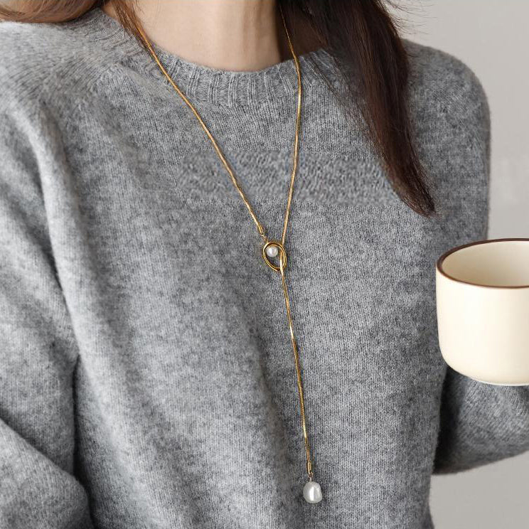 Skin-Friendly Lariat-Style Pearl Necklace